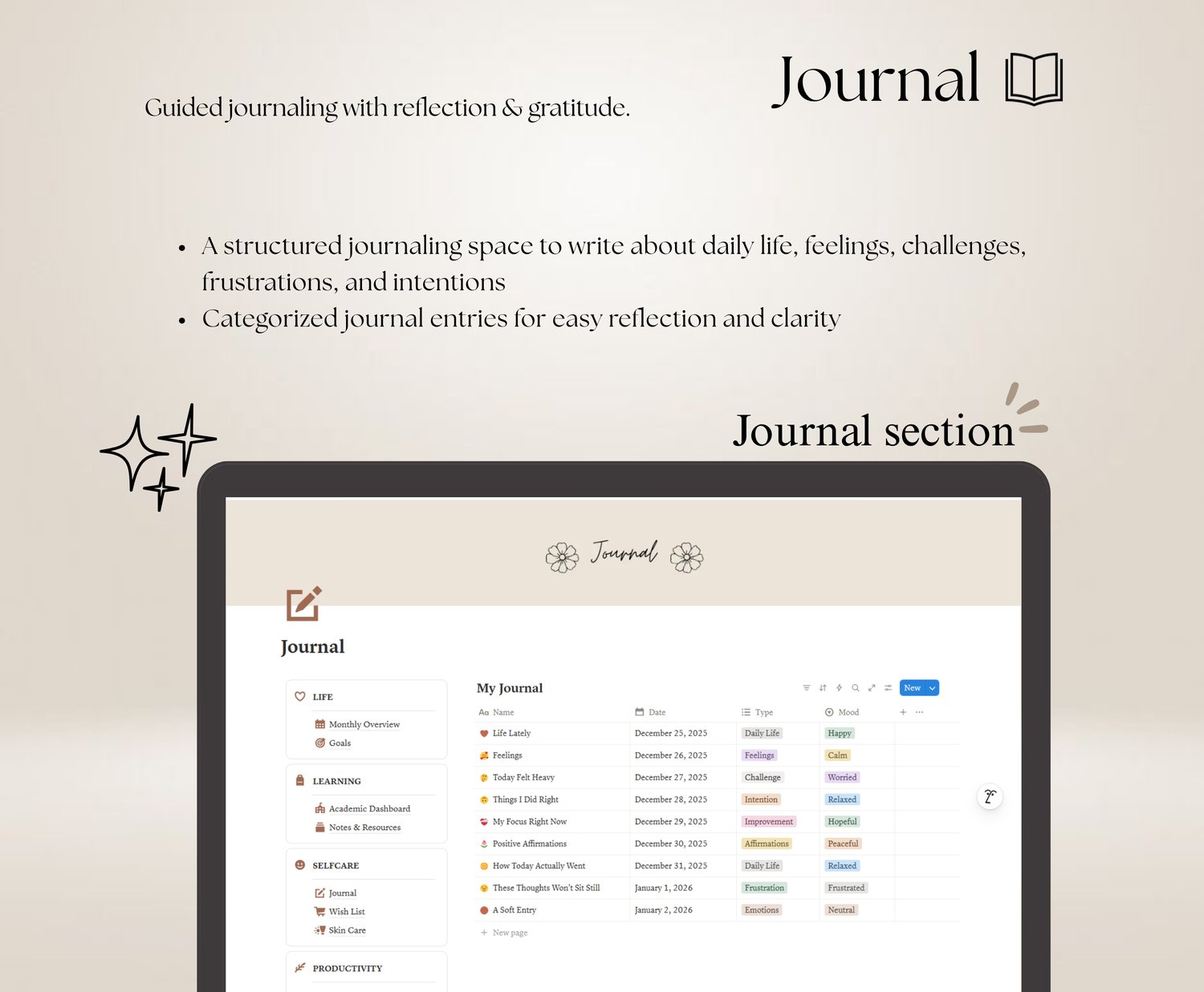 - Gratitude & Reflection pages for mindful check-ins
