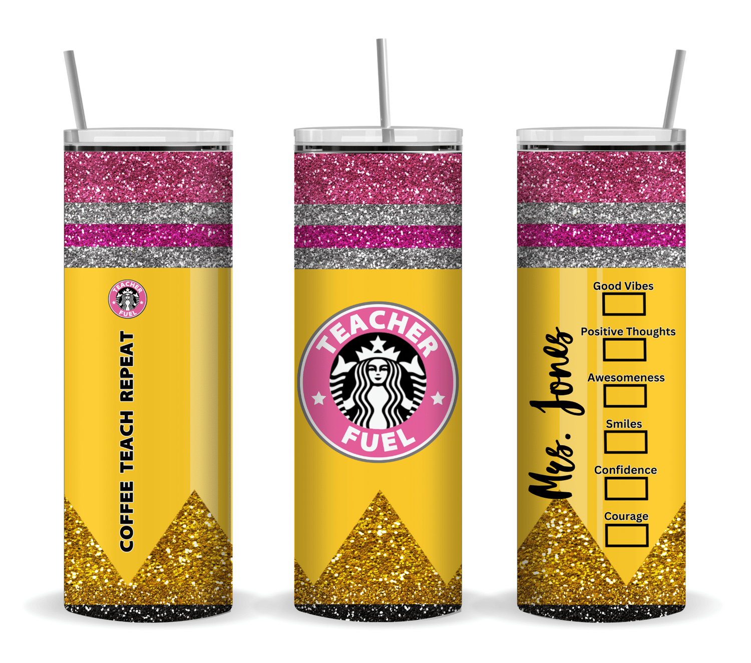 Personalized Teacher Fuel Tumbler | Starbucks Inspired Cup | Custom Teacher Gift | Back to School Teacher Appreciation | Hot Cold Coffee Cup
