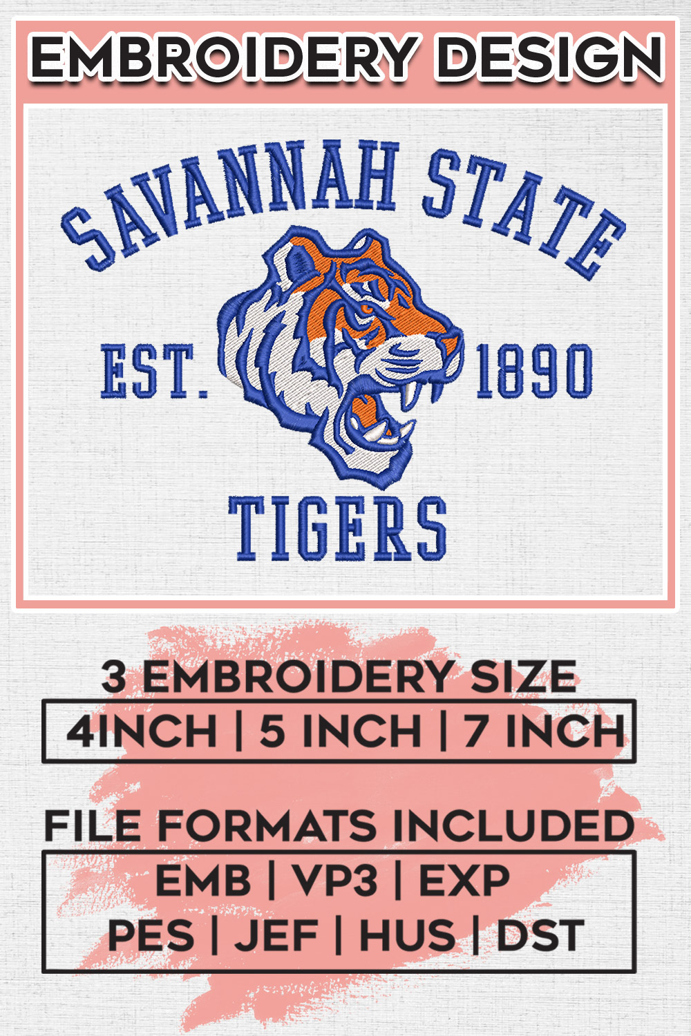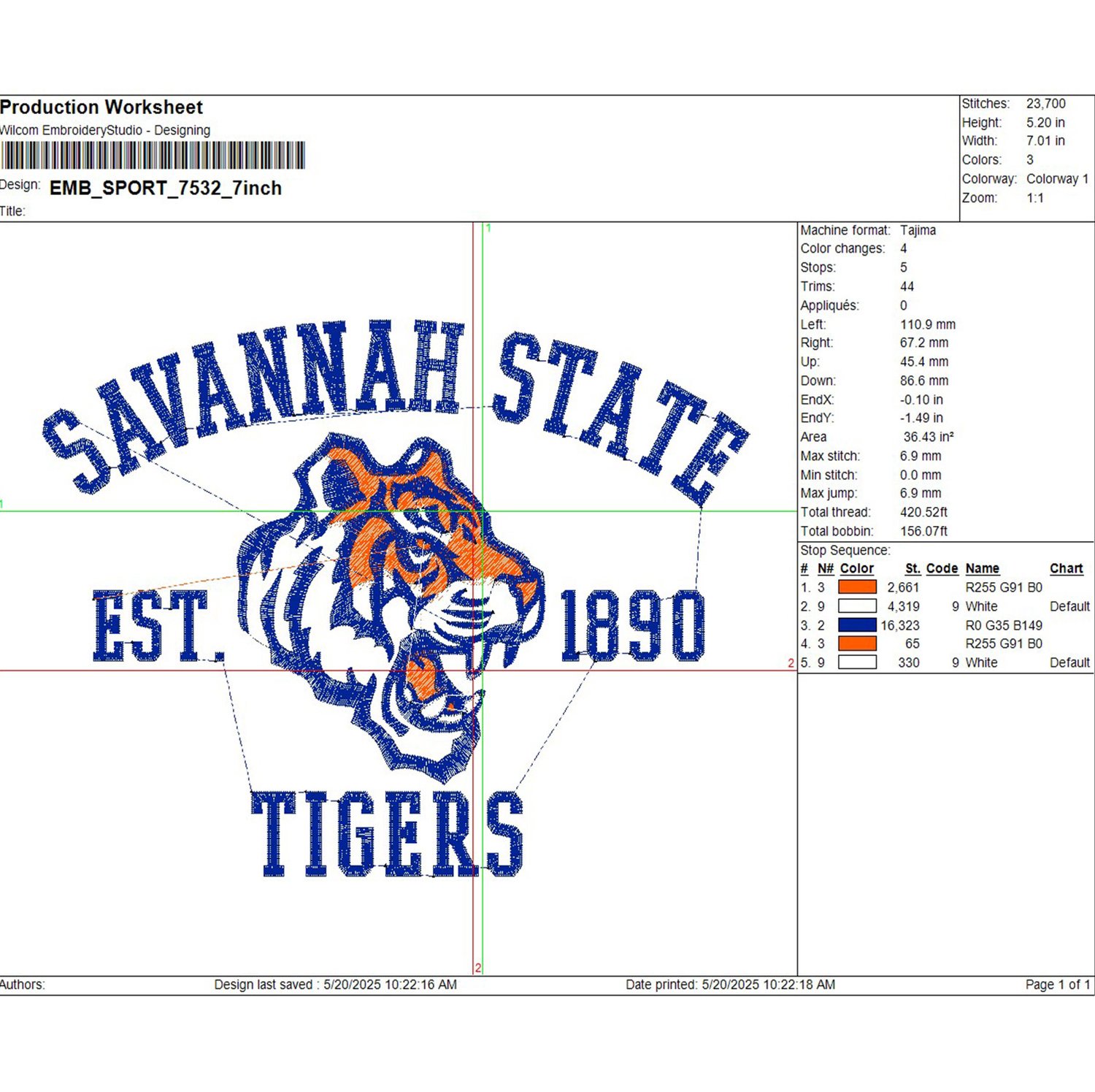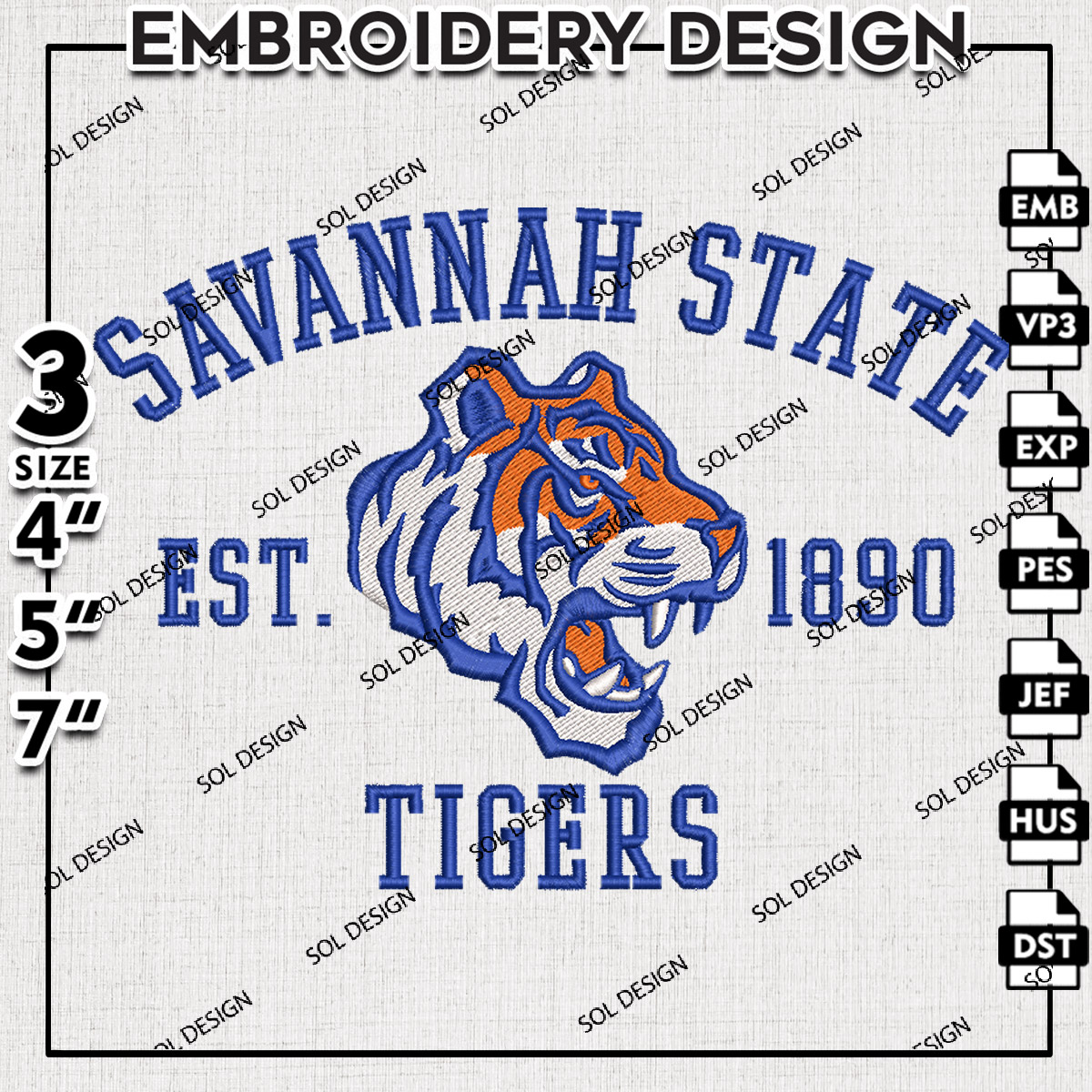 Savannah State Tigers NCAA Football Team Est Logo Embroidery Designs, NCAA Savannah State Tigers Machine Embroidery Files, NCAA Logo embroidery designs, Ncaa Savannah State Logo, Digital Download