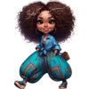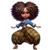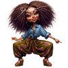 10-Piece Extreme Caricature PNG Bundle - Fair Skin African American Woman in Ankara and Denim Boho Style