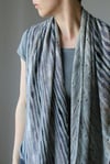 Note: Main color had almost completely been used up for the original sample. If you want to make sure you don’t run out of yarn, do a gauge swatch. Also, you can safely leave out stripes for a smaller (but still genereously sized)version of the shawl.