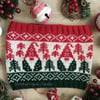 Method: This stranded colorwork cowl is knit in the round from the bottom up. Featuring a cute tonttu and motifs based on traditional Finnish patterns, it can be worked in three or more contrasting colors.