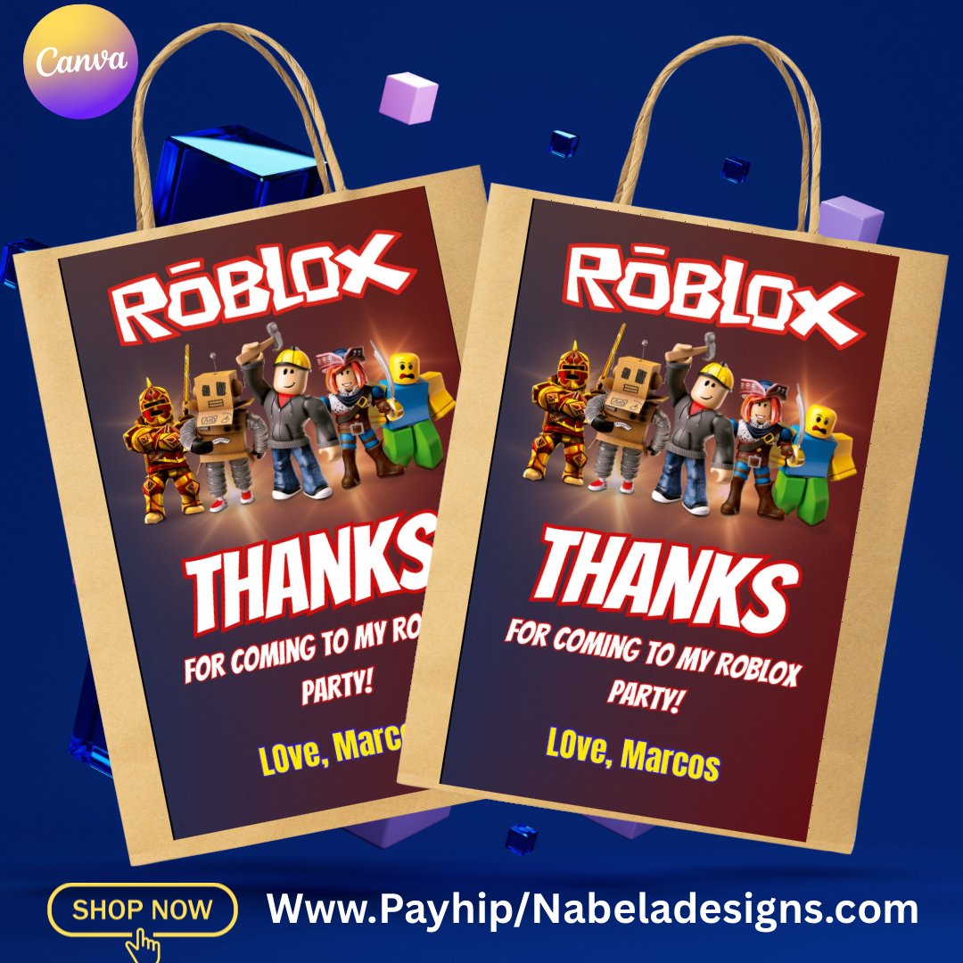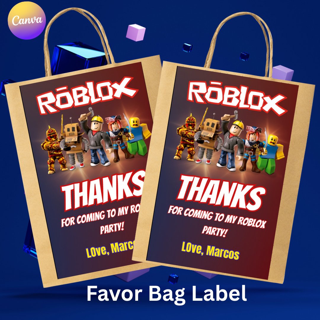 Roblox Birthday Bag Labels | Party Favor Tags | Editable Thank You Labels | Roblox Party Decorations Printable