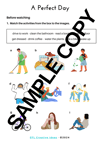 In this lesson, students will talk about thir daily routines, then they will learn / review some vocabulary about movie traiers. They will watch a movie trailer and work on the song lyrics. Finally they will write about their perfect day. There are some topics for discussion in the Bonus tasks section. You will get the Student's worksheet and detailed Teacher's notes with answer key.