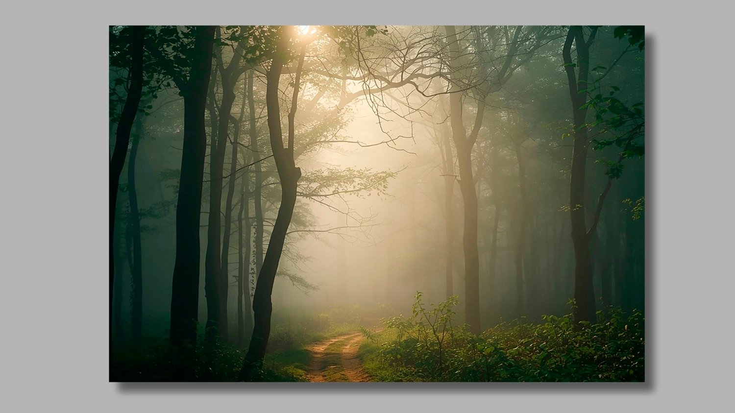 Immerse yourself in a foggy Zen forest, evoking calmness and mindfulness. Ideal for meditation rooms, yoga studios, and bedrooms. This high-resolution digital download combines mist, soft lighting, and atmospheric depth for a peaceful visual experience.