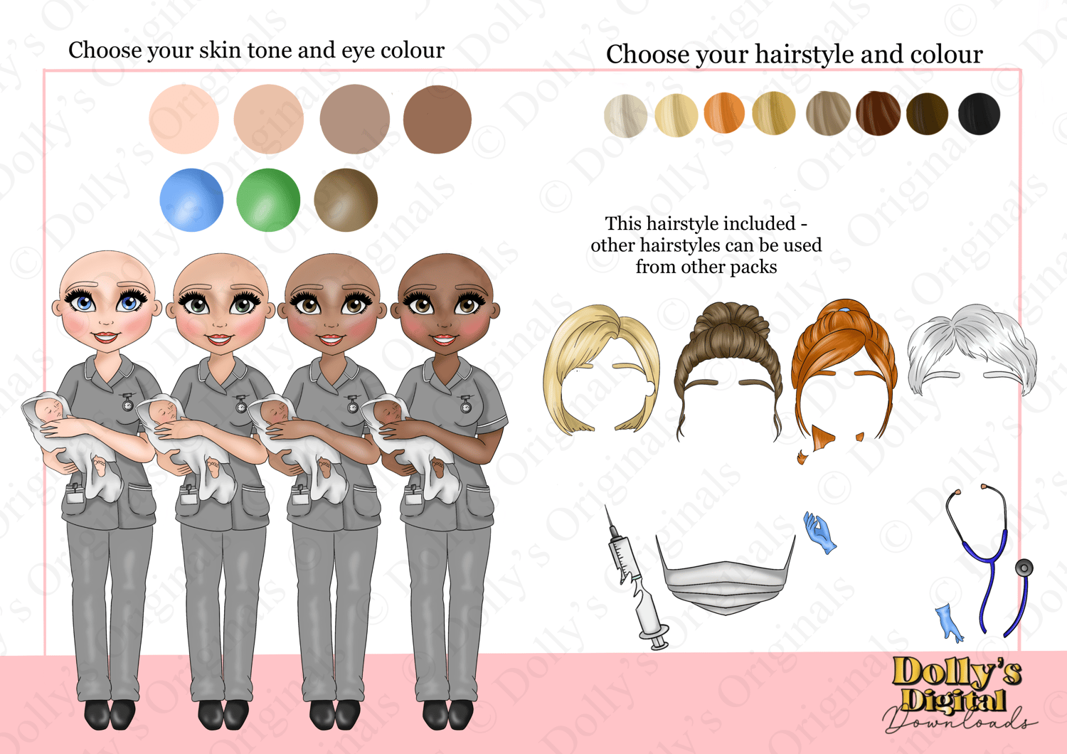 Instant digital download of our Midwife in Grey PNG (65PNG’s)