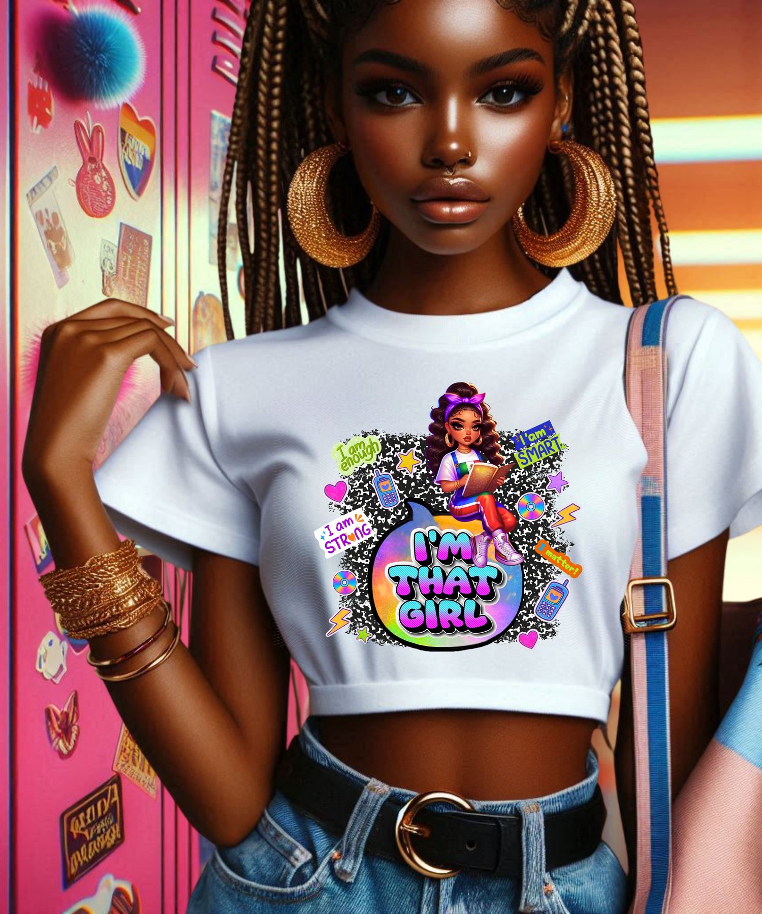 Bring bold vibes and fierce pride to your back-to-school creations with this Latina Edition of the “I’m That Girl” bundle! Featuring a stylish, confident teenage girl with wavy and curly hair, bandanas, and trendy outfits — this glossy cartoon clipart set celebrates culture, confidence, and creativity.