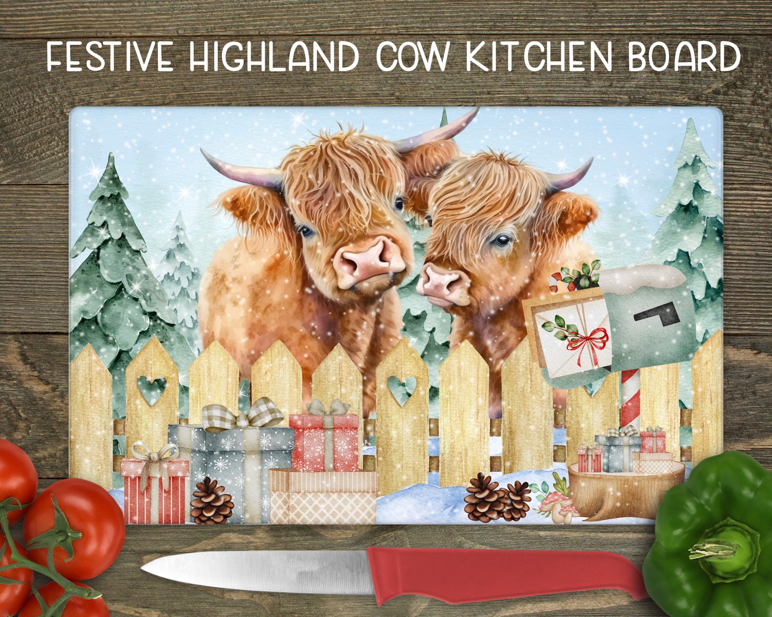 Festive Highland Cow Kitchen Board