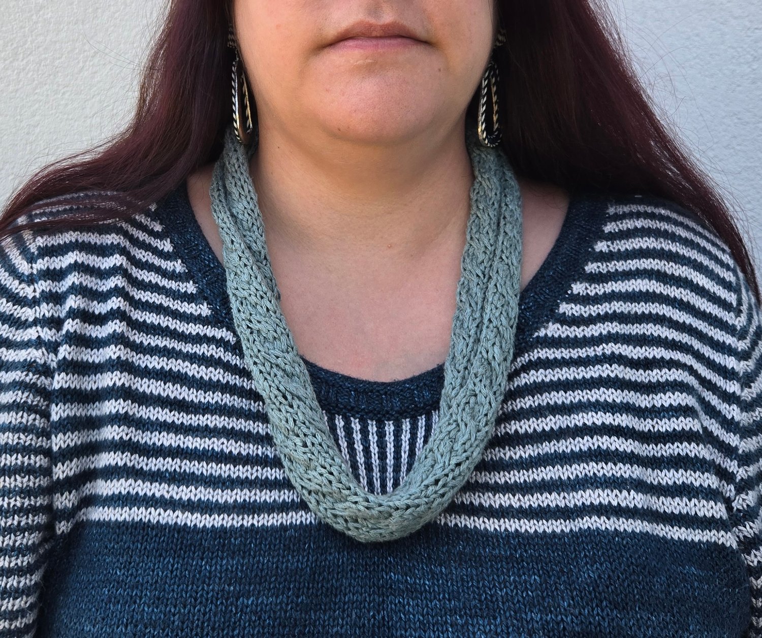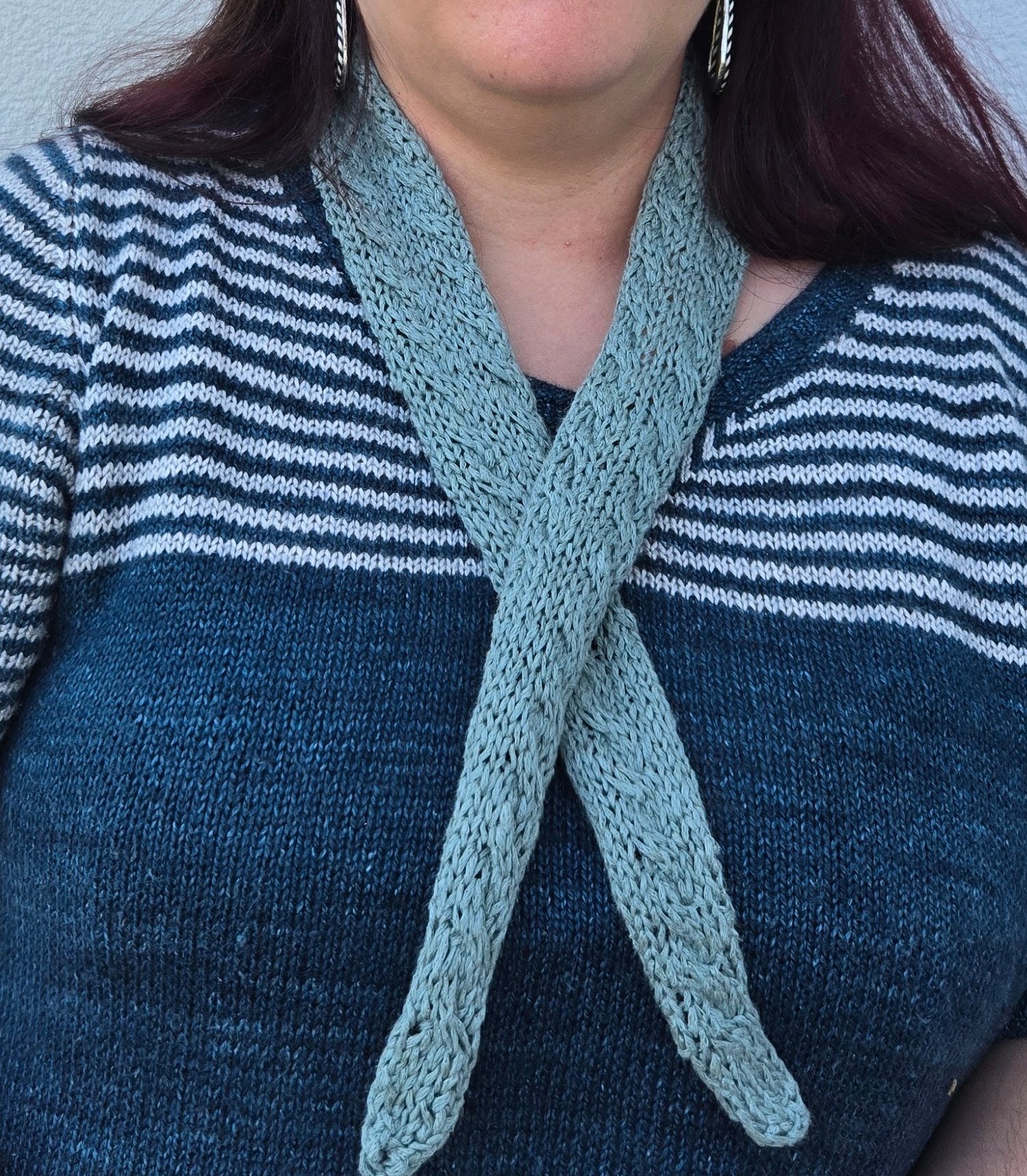 Atlantis is a quick little knitted scarf featuring a simple trio of rope cables.