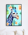 *A cute whimsical blue-colored giraffe in a beautiful fantasy flower garden*