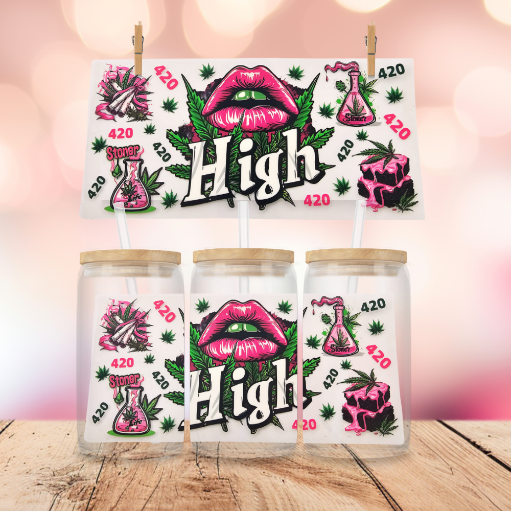 Stay lifted in style with the 420 High Wrap—a perfect blend of chill vibes and bold personality. Designed to fit 16 oz Libbey glass cans or tumblers, this wrap features vibrant 420-themed artwork that’s ideal for those who like to sip and vibe. Whether you're relaxing or celebrating the holiday, this design brings high energy to every cup.