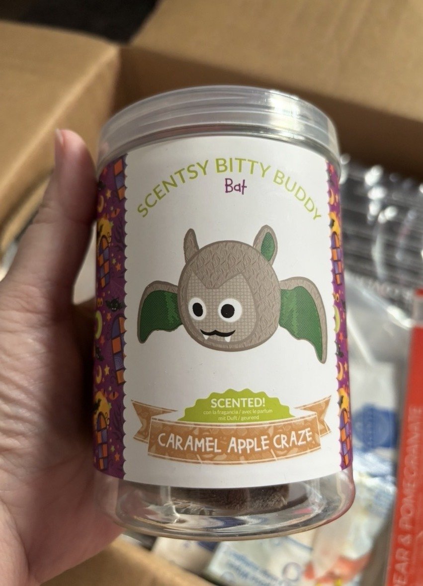 This retired Bat Bitty Buddy is infused with the Caramel Apple Craze fragrance — creamy caramel, sweet red apple and whipped vanilla.