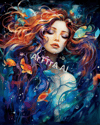 AI artwork that brings the beauty of the underwater realm to life. This stunning piece features a mermaid with fiery red hair gracefully submerged in crystal-clear waters, surrounded by colorful fish.