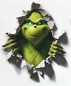 Grinch Merry Christmas Text Art: An edgy Grinch peering over "Merry Christmas" text with plaid and snowflake accents. Ideal for DIY holiday shirts, posters, and social media graphics.