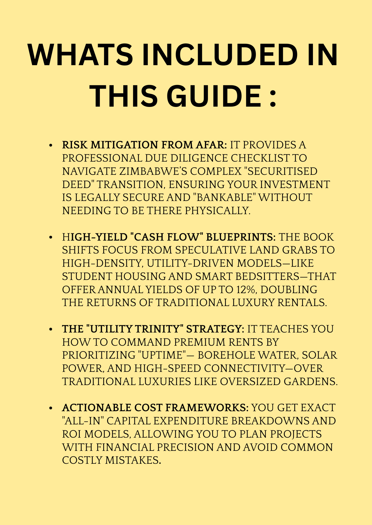 The complete diaspora guide to investing in Zimbabwe property from abroad. Learn how to protect your capital, verify ownership, and navigate the legal process with confidence. This guide breaks down how to manage construction remotely, avoid common (and costly) mistakes, and build secure, income-generating property assets without relying on guesswork or informal systems. Perfect for diaspora investors looking to create long-term wealth, reliable rental income, and a strong foothold back home.