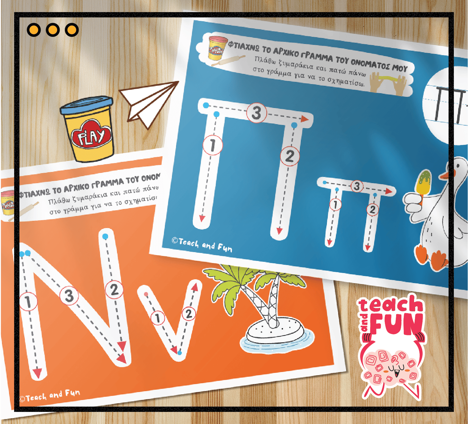 - για εξάσκηση στη γραφή των γραμμάτων με τη σωστή φορά (με μαρκαδόρο γράψε-σβήσε)