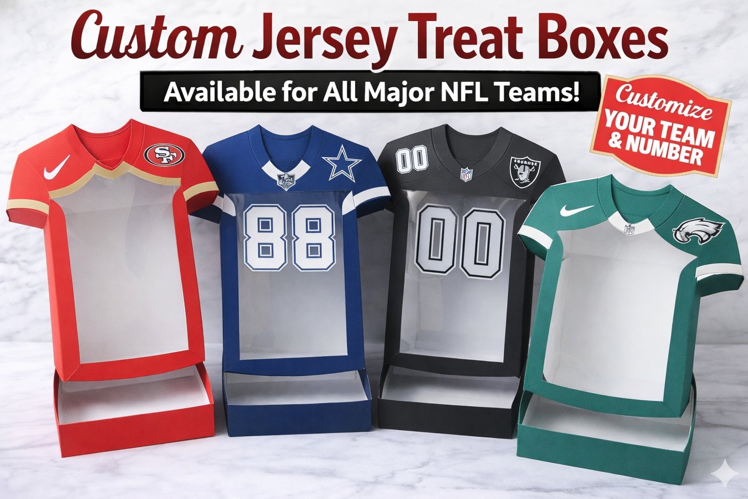 Custom Jersey Treat Boxes | Clear Window Acetate | Multiple Teams Available