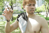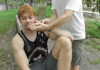 I invite Jake to teach me some training in the park. He doesn't know I will start freezing him several times while showing me exercises. Jake gets frozen while wondering what is happening. He freezes suddenly, then slowly and scared, while exercising or setting his hair. He get his shirt taken and I keep freezing him while he is eating and drinking.