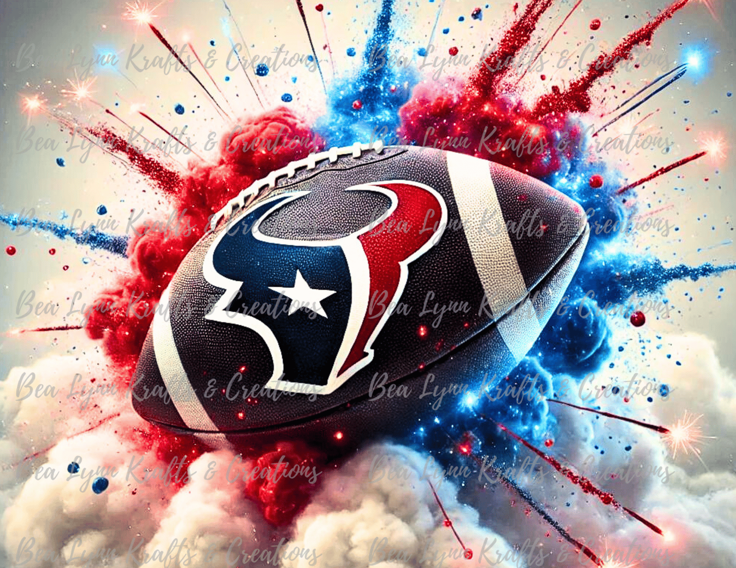 HOUSTON TEXANS FANS, IT’S TIME TO BRING THE HEAT! This transparent PNG is bursting with Texans pride, featuring dynamic deep steel blue and battle red sparkles exploding from a football, representing the heart of Houston football! Whether you’re prepping for game day or showing off your Texans spirit year-round, this design is perfect for creating custom merch like t-shirts, hoodies, mugs, posters, and more!