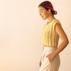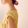 Playful vertical stripes, boat neck, simple straight silhouette make Cinna top a nice addition to any summer wardrobe.