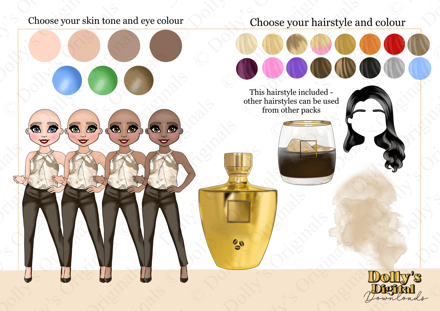 Instant digital download of our Double Espresso Vodka Dolly Character Bundle PNG (33 PNG’s)