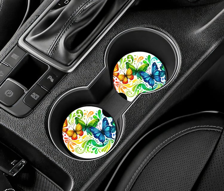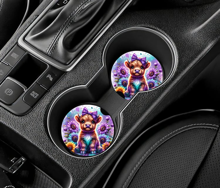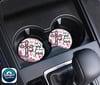 Car Coaster set of 2. These crafted Car Coasters are made of neoprene and are 2.75" round. This set comes beautifully packaged and ready for use to keep you car's cup holders clean or ready to give as a gift.