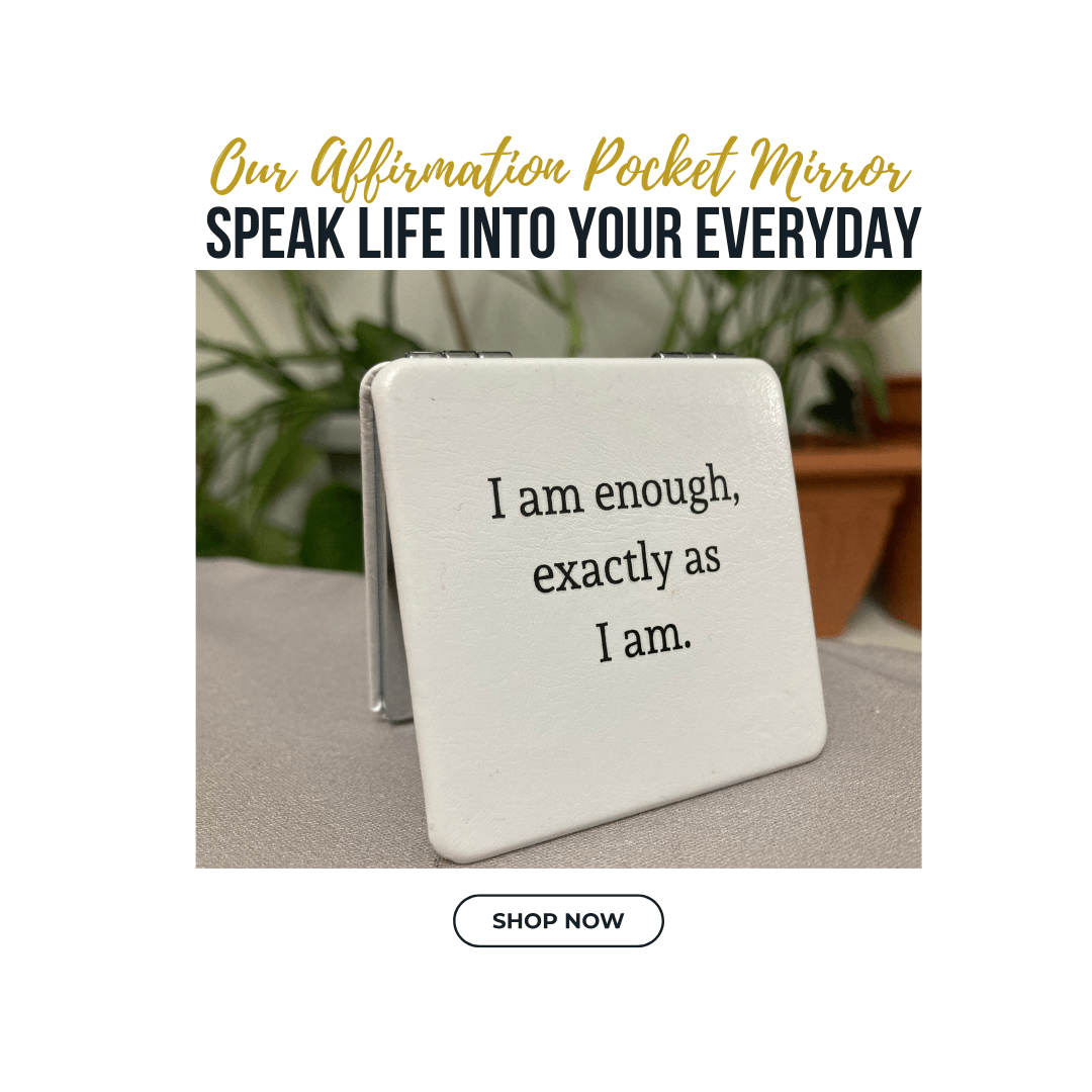 The affirmation pocket mirror is a sleek stylish addition to your self care routine. This white PU leather mirror is not only perfect for quick touch-ups on the go, but it also features a positive affirmation to help build your self-esteem. Say it, see it, and believe it with our free 21 Days Of Affirmation Guide with your purchase and join our 21 Days of Affirmations Facebook Group With the belief that it takes 21 days to start to formulate a new habit, why not form a habit of a lifetime that affirms positivity and confidence every time you look in the mirror? It makes a great gift for a friend or loved one who could use a little positive boost in their daily routine.