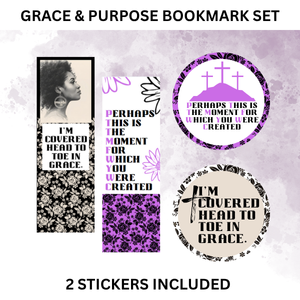 This Grace & Purpose Bookmark Set includes two beautifully designed faith bookmarks: