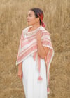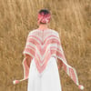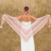 - The shawl is worked in the shape of a modified triangle with a V-line at the top of the item.