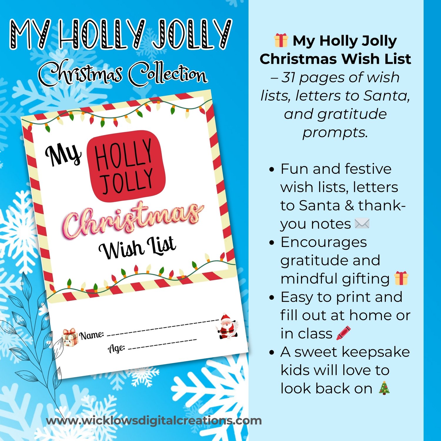 π Holly Jolly Christmas Wish List (Ages 5+, 31 pages)