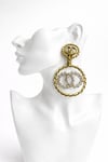Gold-Tone Crystal Logo Clip-On Earrings