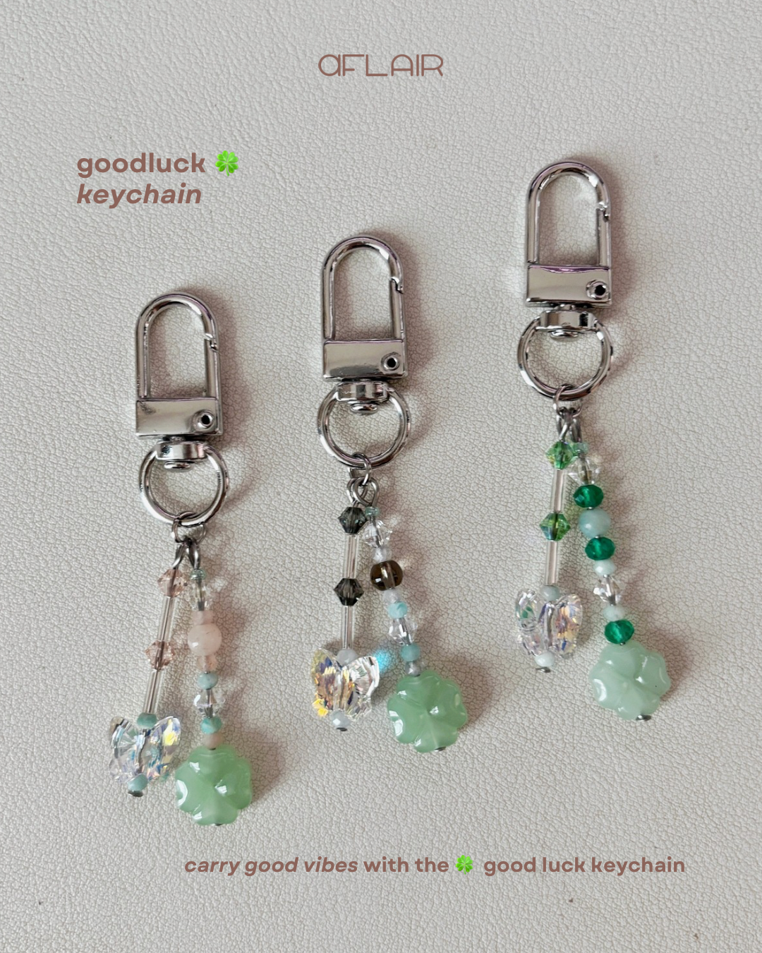 handcrafted with glass clover charm, gemstones, Swarovski components, Japanese seed beads, stainless steel hardware