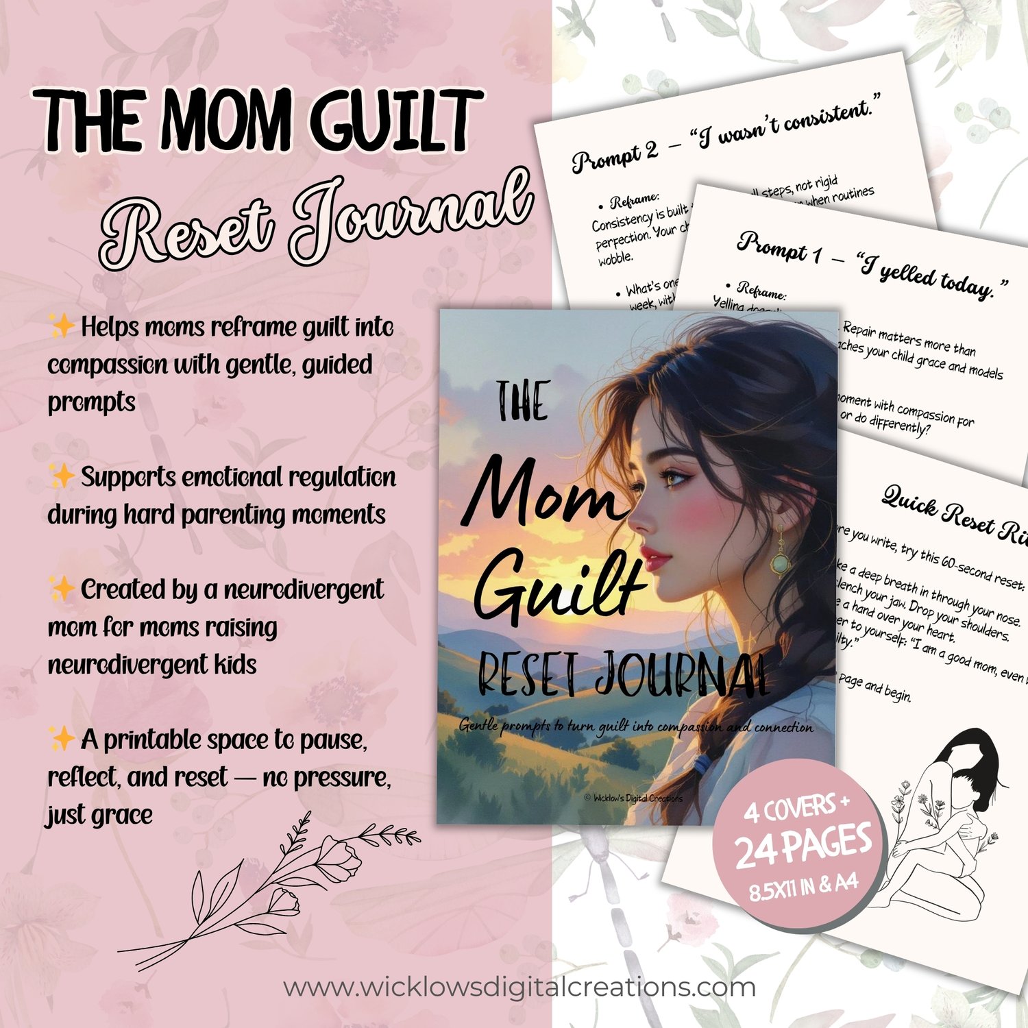 - Reflective prompts to release guilt and self-doubt