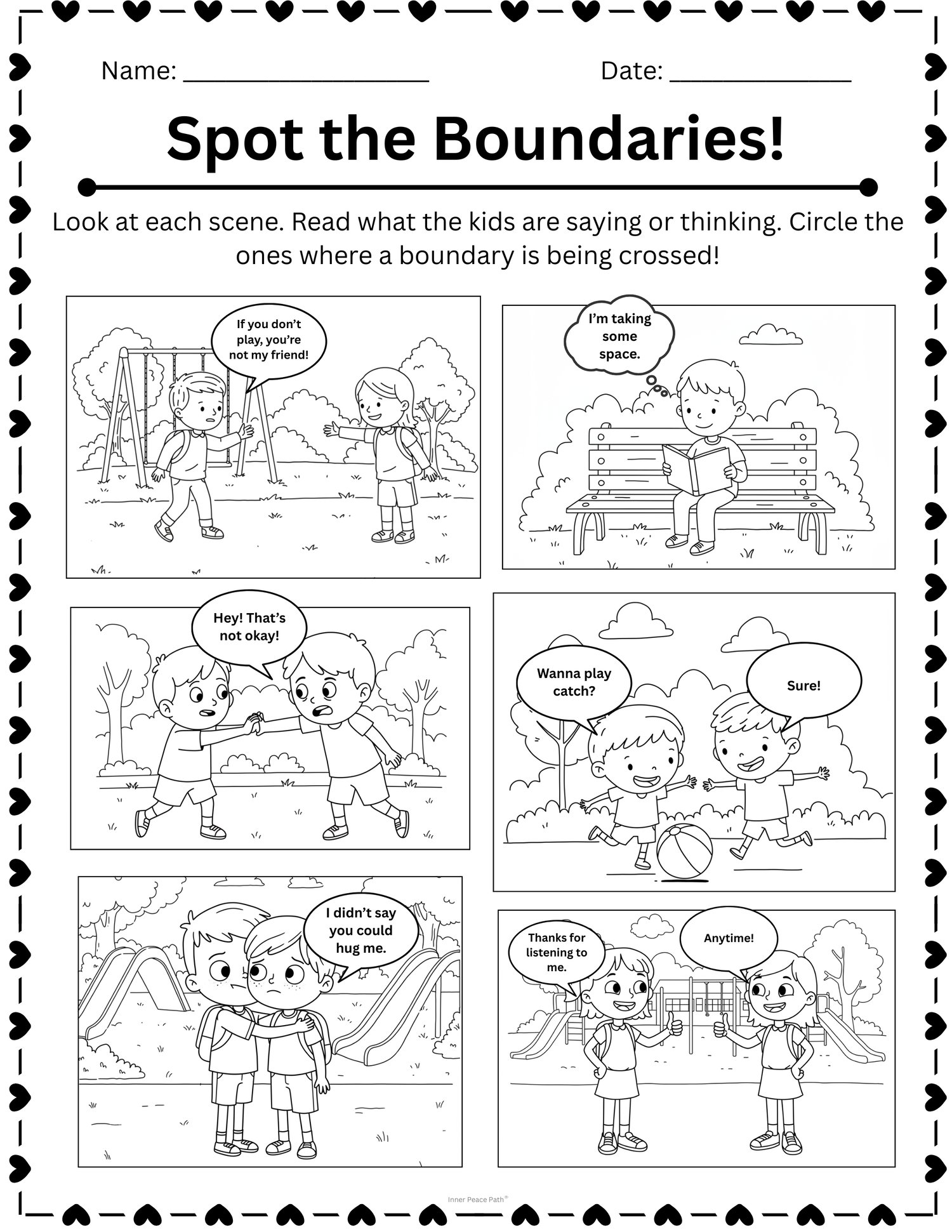 This free SEL worksheet gives students real-life kid scenarios to decide whether boundaries are being respected or crossed — a perfect warm-up for any friendship or social skills lesson!