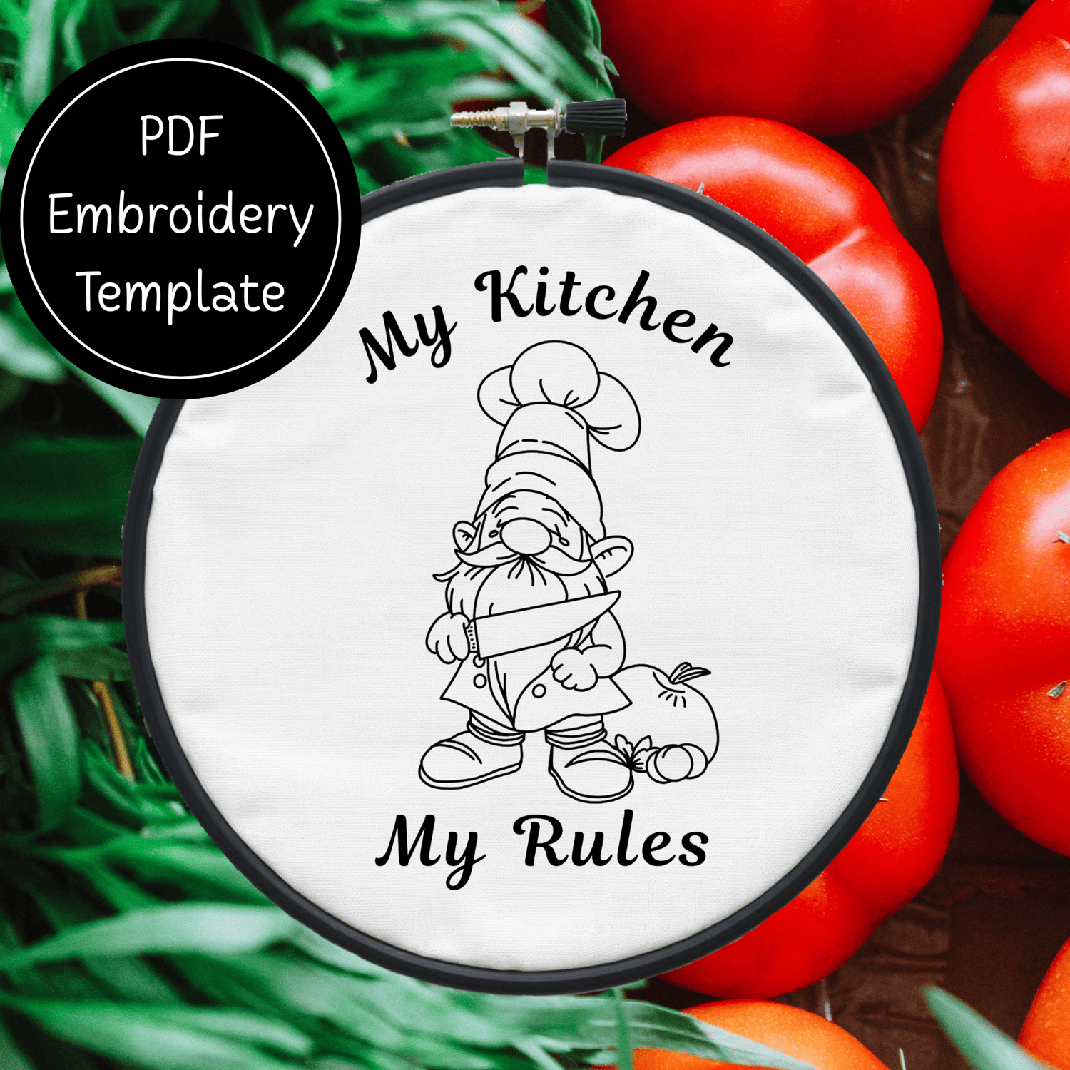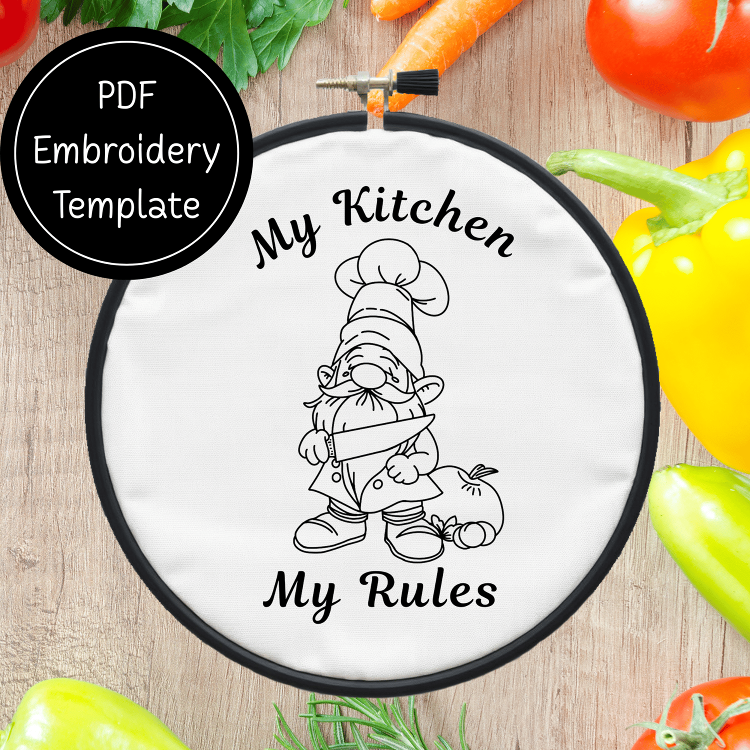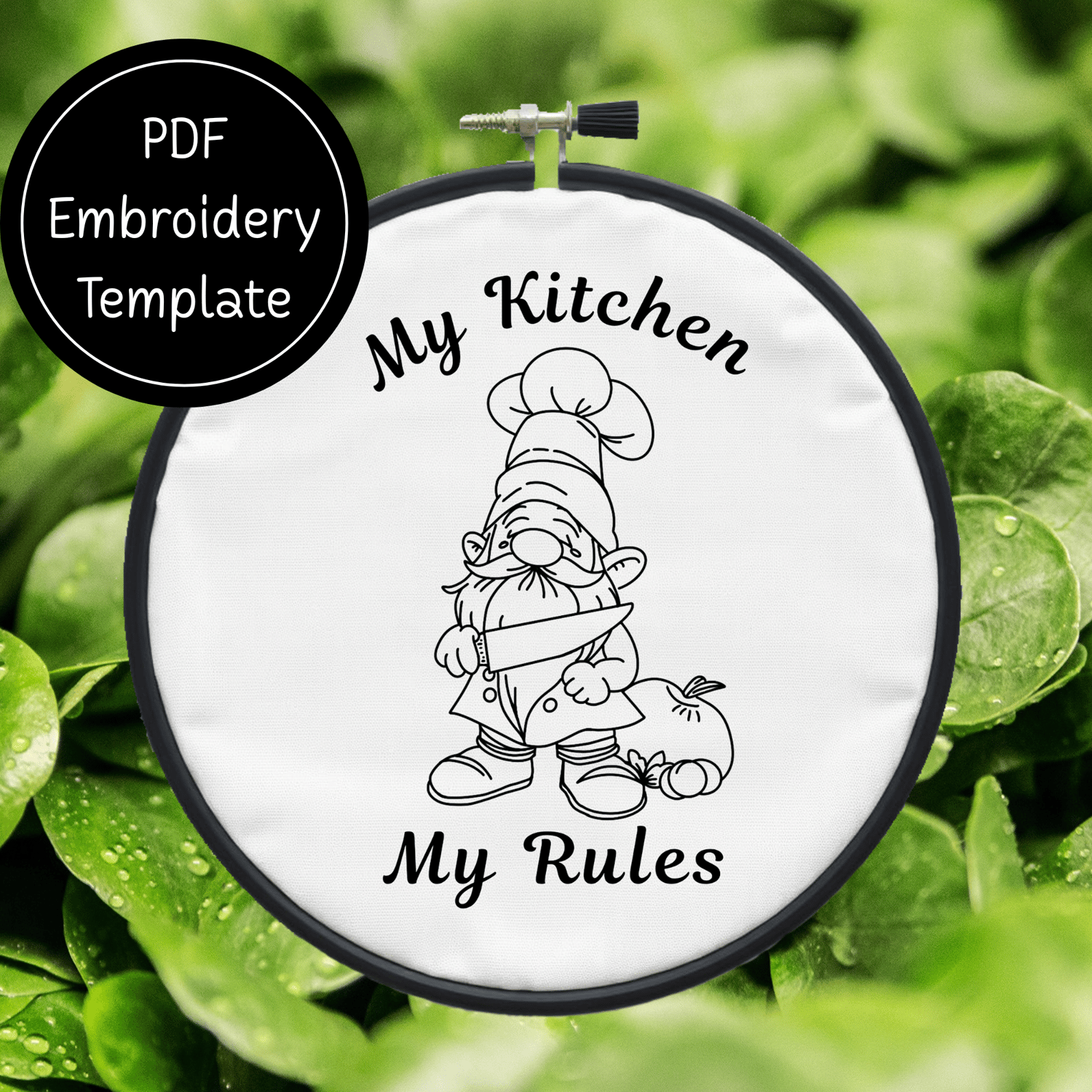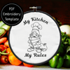 Funny Kitchen Hand Embroidery Pattern DIY Gnome Design For Hand Stitching - Instant Download