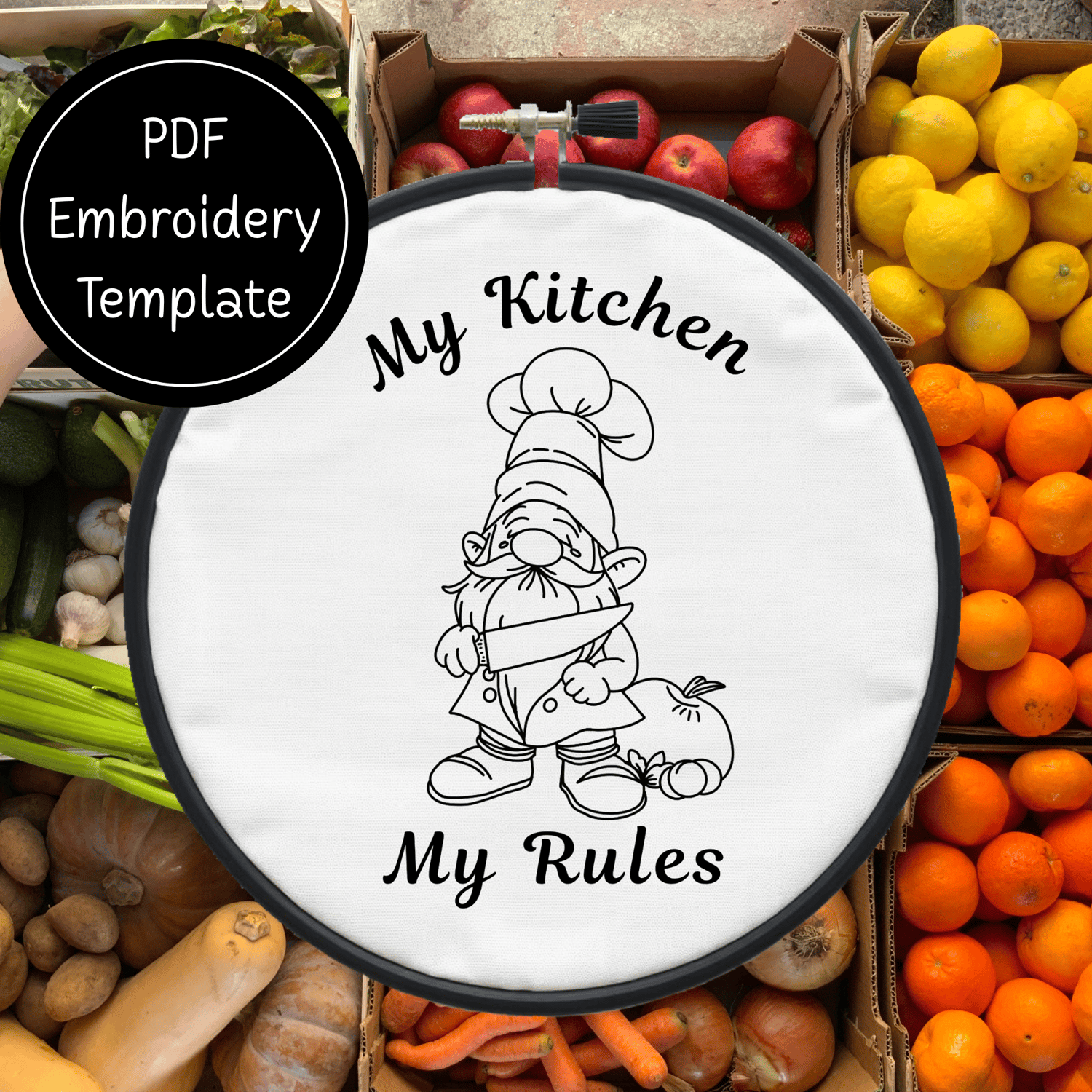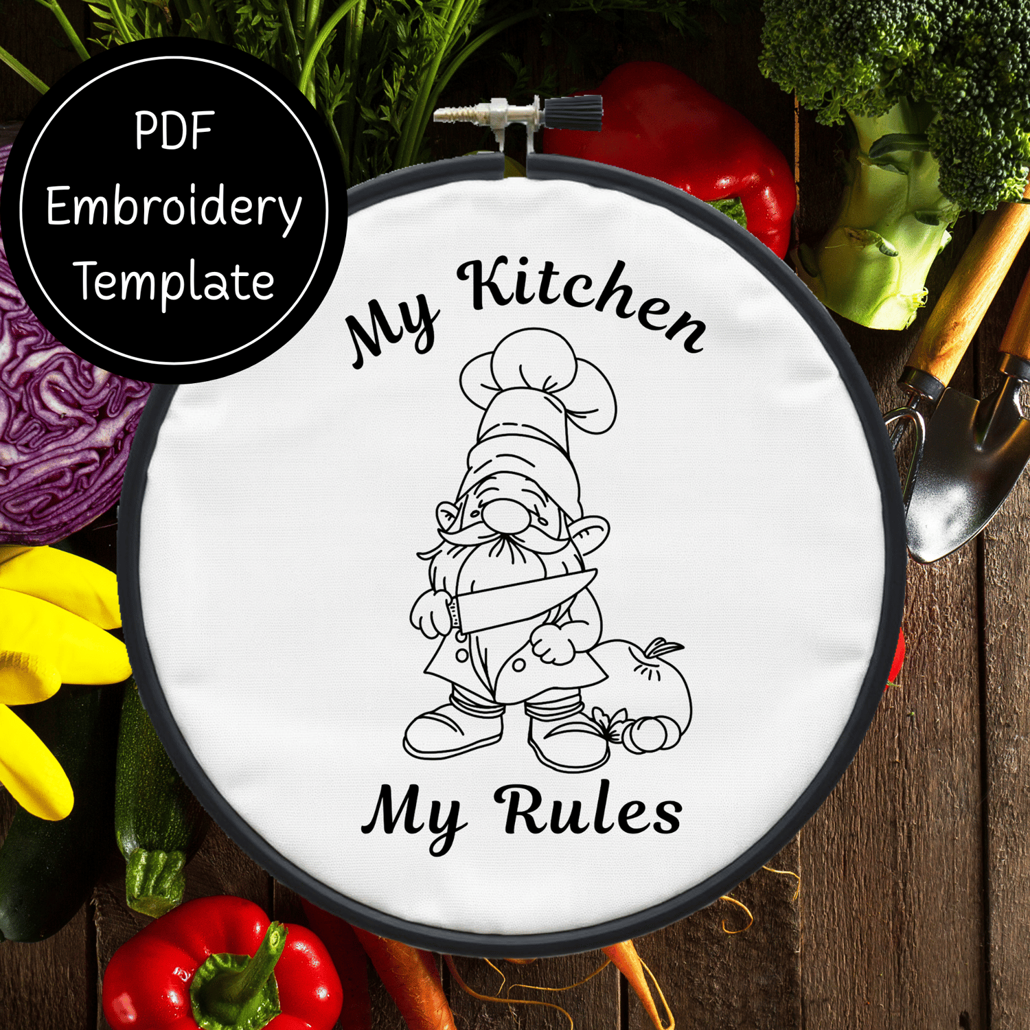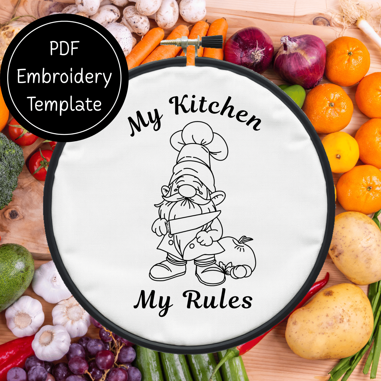 Funny Kitchen Hand Embroidery Pattern DIY Gnome Design For Hand Stitching - Instant Download