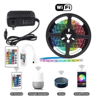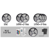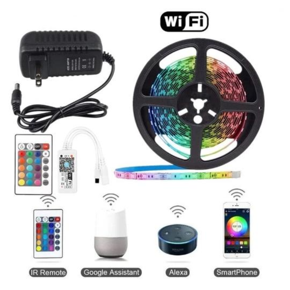 Smart LED light strips come in either 5M (16 feet), 10M (32 feet) or 15M (48ft) or 20M (65ft) long. It also comes with remote control, a WIFI module so you can control it with your phone and a power supply. (Battery for remote control not included)