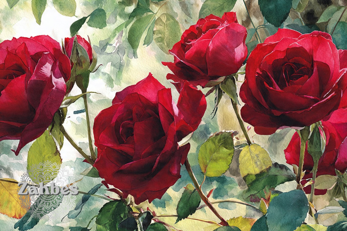 Crimson Garden Elegance – Watercolor Art Print | Instant Download | Super Deal 16 Sizes