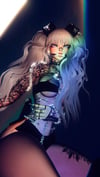 Jiggle physics in hair, boobs, butt, belly piercing, ears, tail, leash, chains on arms and legs.