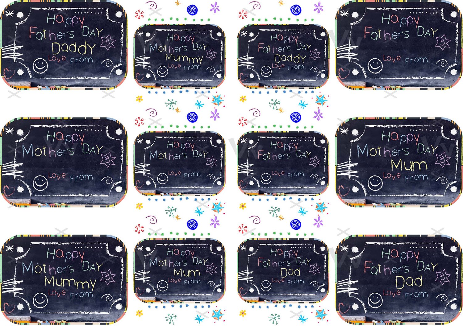 Variations of Mother's Day/Father's Day for Mum, Mummy, Dad, Daddy.