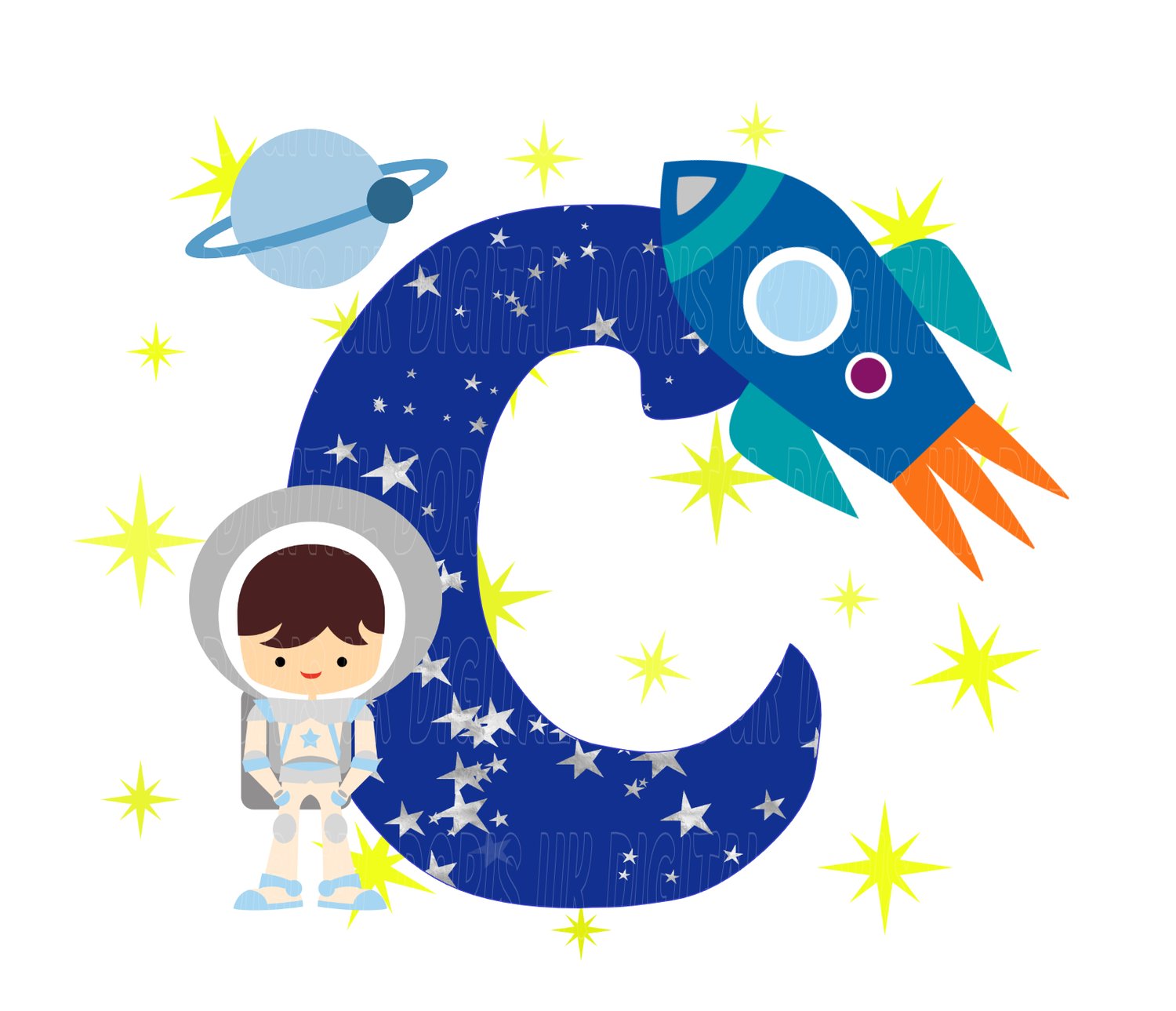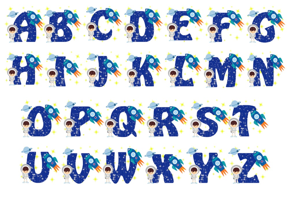 Space Boy Astronaut Rocket Alphabet Set Digital Download 26 PNGs