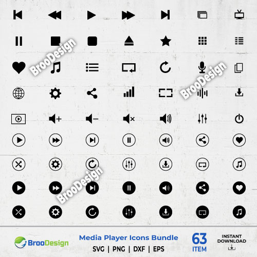 Media Player Icons Bundle SVG (SVG, PNG, DXF, EPS)