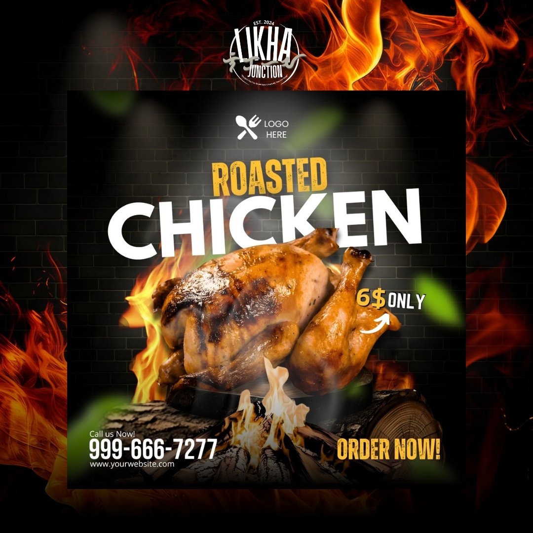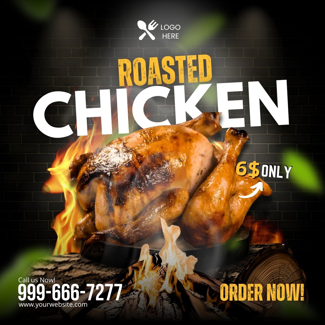 Make your roasted chicken stand out with these stunning, fully editable Canva banner templates. Designed with a sleek dark background and mouthwatering visuals, these templates are perfect for restaurants, food bloggers, or any business looking to promote their delicious offerings on social media.