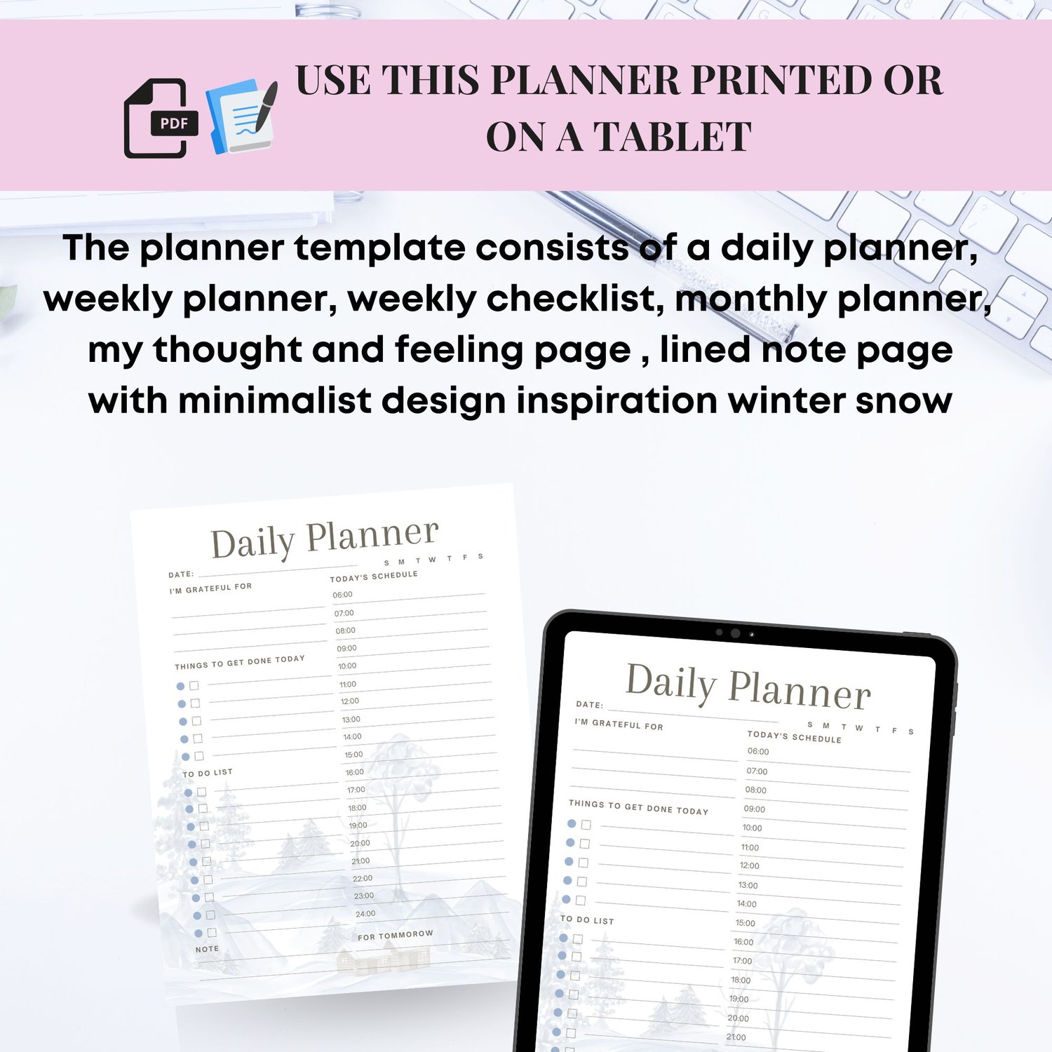 Using a planner with can help you stay on track and achieve your goals. It can also help you feel more in control of your life and help you overcome difficult times with Daily, Weekly, Monthly Planner, Weekly Checklist, Thought & Feeling Page, Note Page Minimalist Design. This is a Planner Set Simple Design for you!