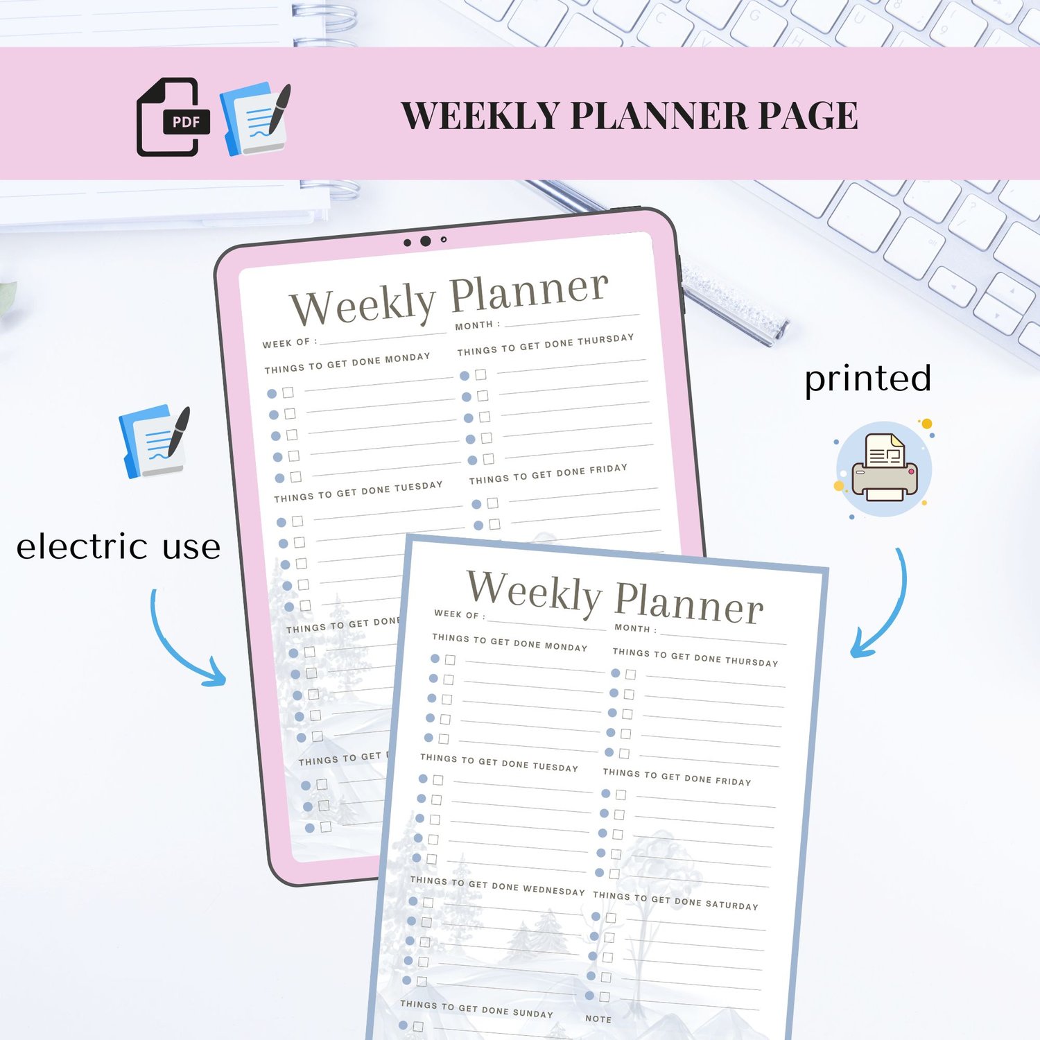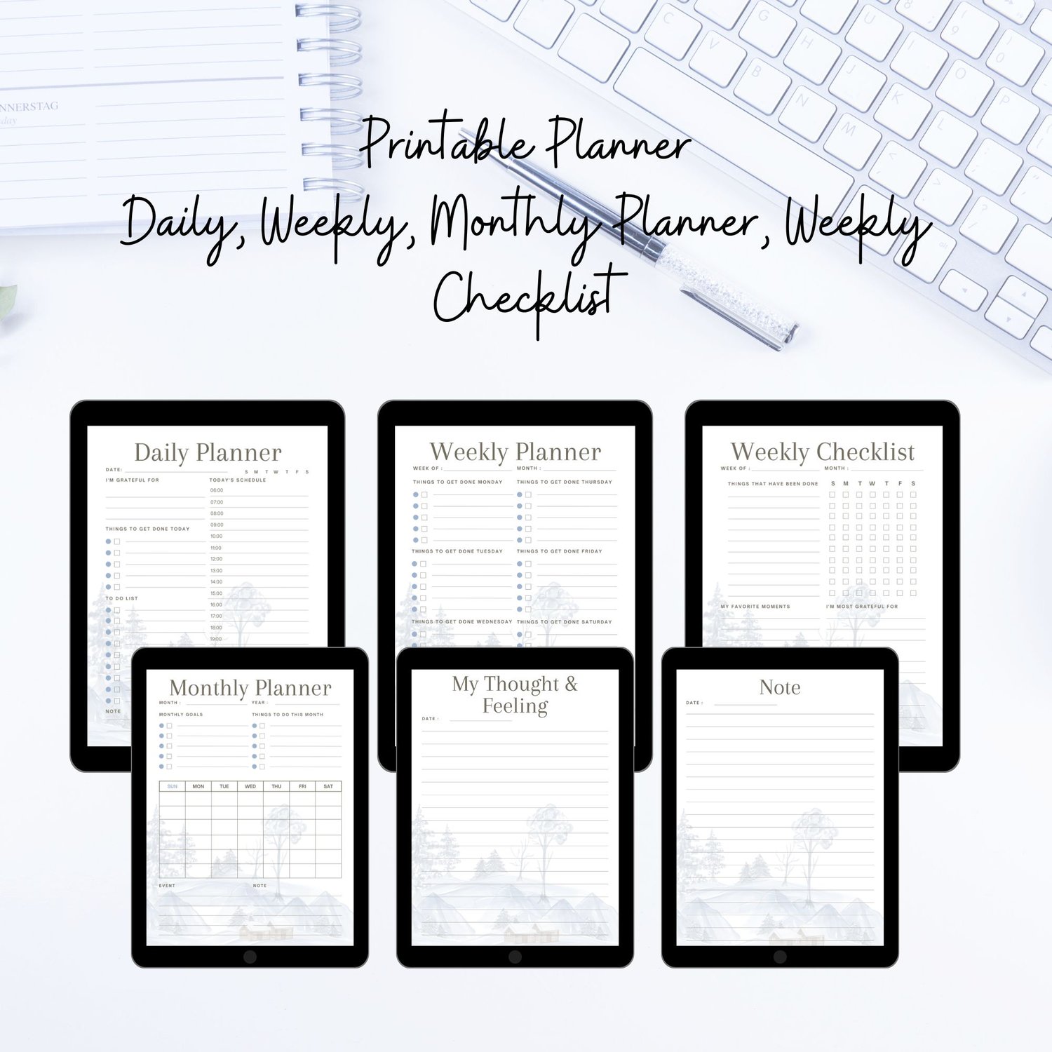 Printable, Goodnotes Planner Daily, Weekly, Monthly Planner, Weekly Checklist, Thought & Feeling Page, Note Page Minimalist Design