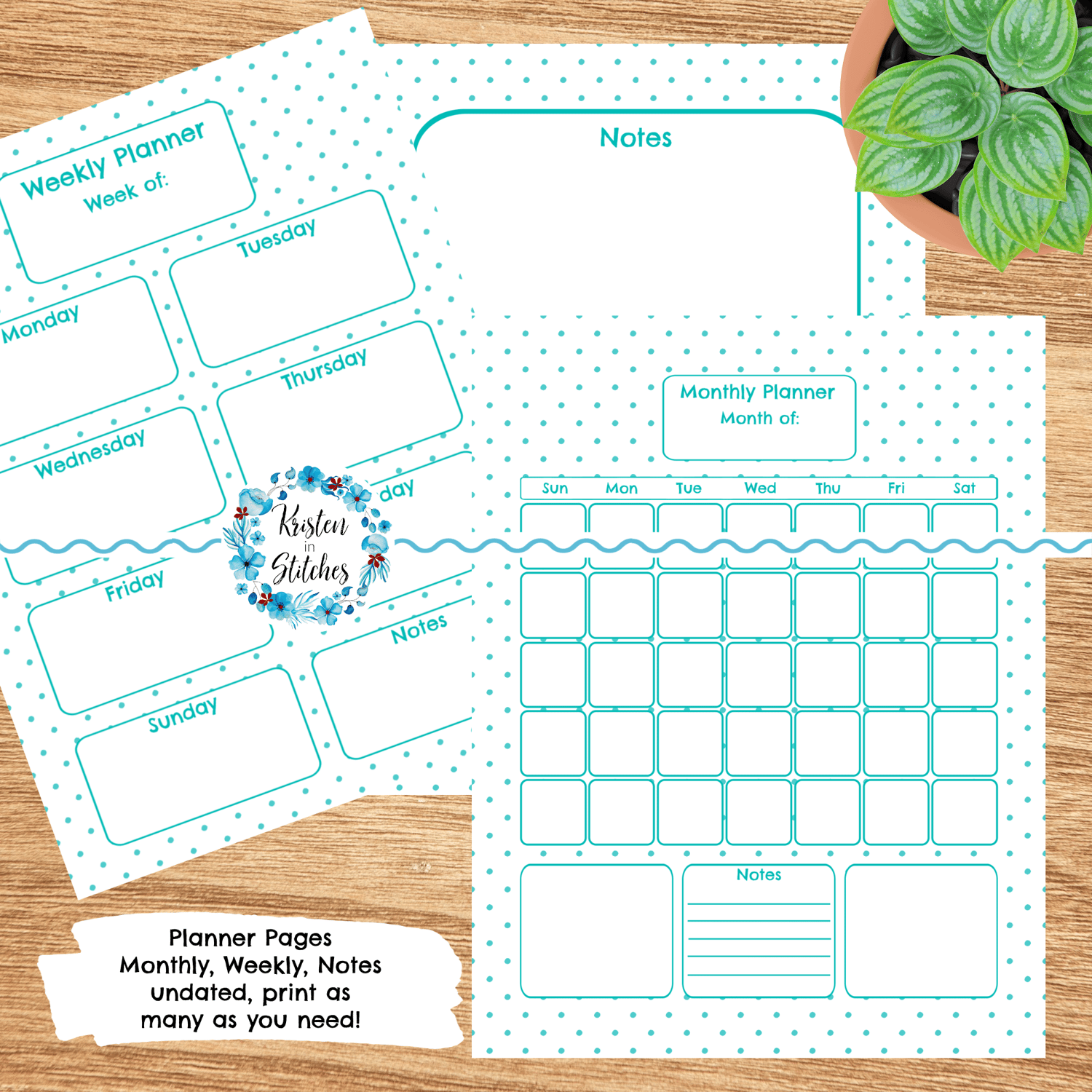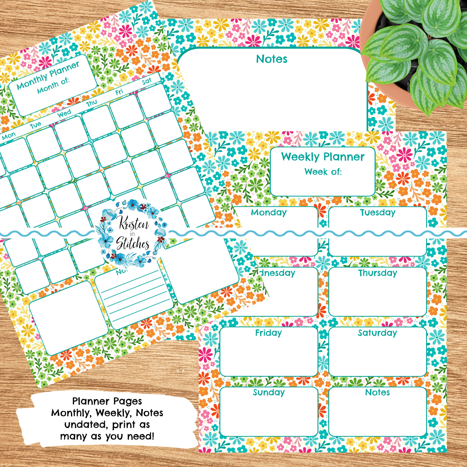 ✔ 3 Planner Pages – including weekly and daily and notes formats, in primary design and coordinate