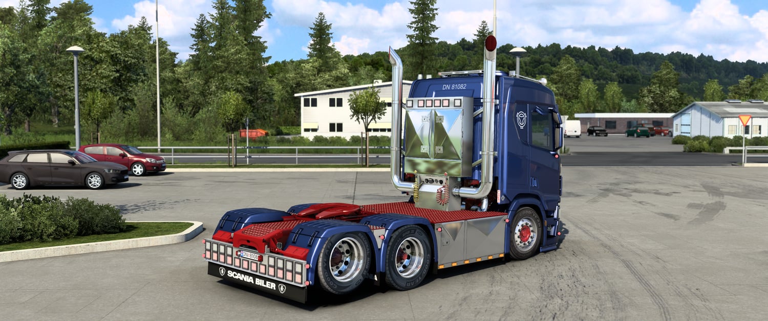 NOTE: dont work with every mods, replaces base Scania R normal cab, other cab variants dont work, dont work with other skins, exhaust work only with Mighty Griffin DLC
