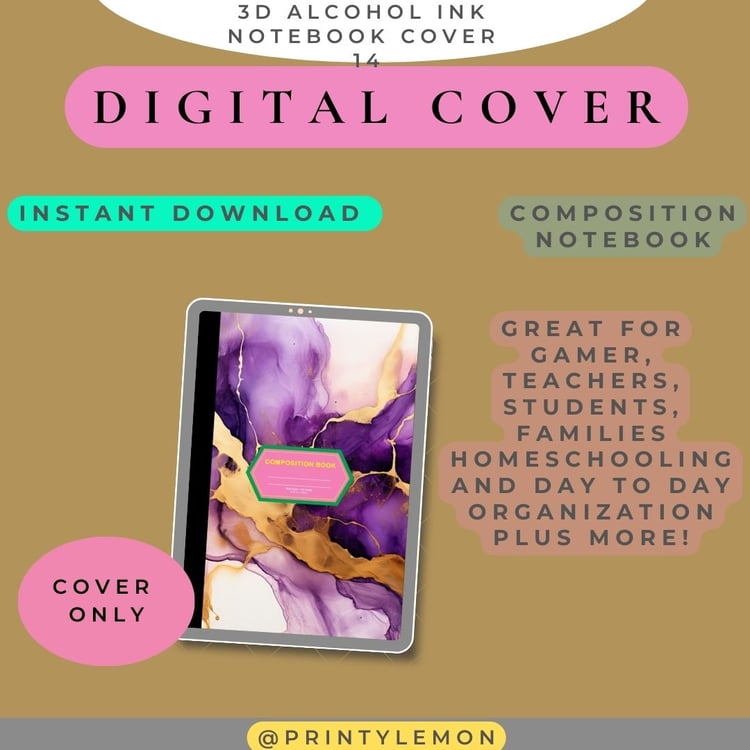 11 Alcohol Ink 3D | Digital Cover Premium | Notebook Cover | GoodNotes | Composition Notebook | Printable