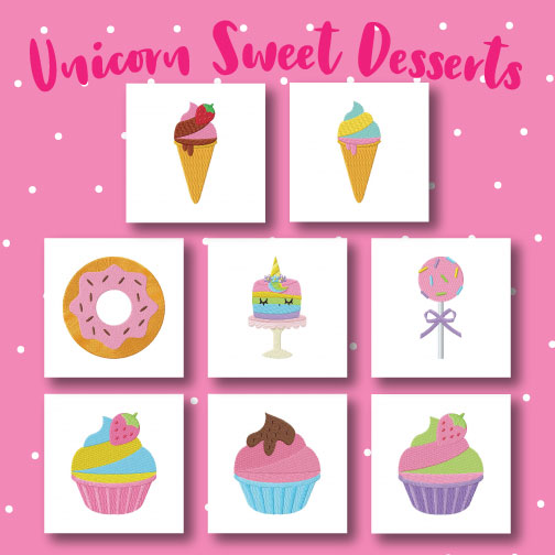 Machine embroidery design bundle, unicorn sweet dessert, INSTANT DOWNLOAD