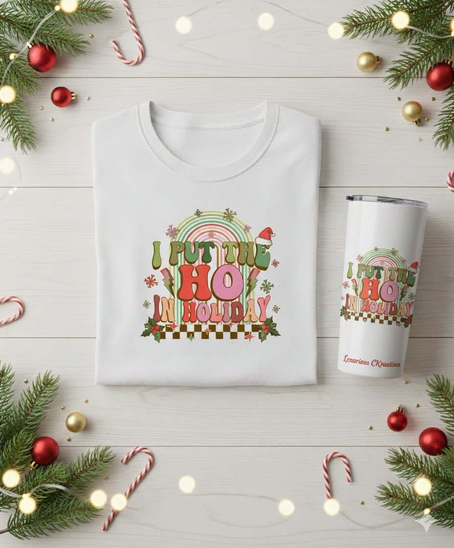 🎄 I Put the Ho in Holiday – Funny Christmas Shirt & Tumbler Set